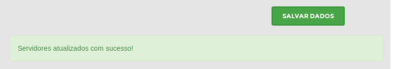 5 - Após informados os novos DNS, Selecione SALVAR DADOS e verifique se será informado a mensagem "Servidores atualizados com sucesso!" conforme imagem a seguir: